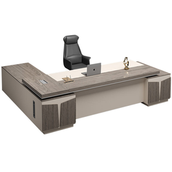 Muebles de oficina comerciales Mesa de escritorio de jefe ejecutivo de oficina en forma de L de madera moderna de lujo con silla y gabinete