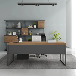 Moderno stile semplice scrivania Manager struttura in metallo e legno combinato singolo ufficio Computer capo tavolo con sedia